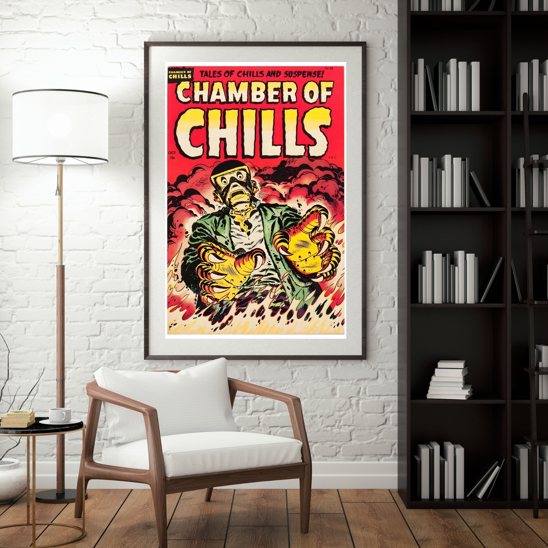 • Title: Chamber of Chills – Vintage Horror Comic Cover Art Print