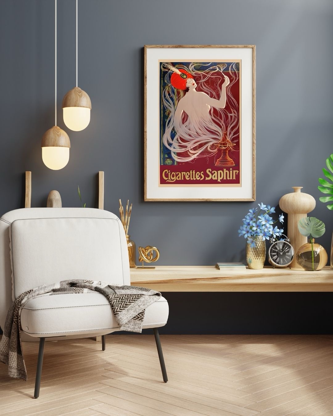 Perfect for decorating your vintage French cafe, retro tobacco shop wall art, or any modern space that appreciates Belle Époque advertising artistry, this Saphir cigarettes poster brings authentic Parisian sophistication to your vintage decor. Whether you’re outfitting a sophisticated smoking lounge, Art Nouveau enthusiast’s den, or just want your guests to marvel at how elegant cigarette marketing used to be, this vintage French advertising art delivers turn-of-the-century glamour with serious artistic flair.