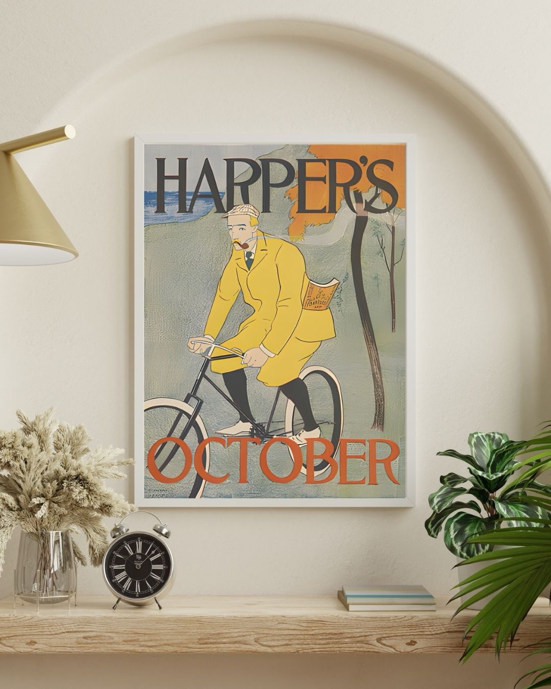 vintage Harper’s magazine cover art, 1890s cycling poster print, vintage bicycle wall art, retro magazine cover decor, victorian cycling illustration, vintage transportation art, antique magazine poster, retro bicycle shop decor, vintage literary magazine art, 1890s americana wall art, vintage publishing history poster, retro cycling enthusiast art, vintage magazine illustration print, antique bicycle art poster, victorian gentleman cycling art, vintage periodical cover art, retro americana magazine decor, vintage cycling culture poster, 1890s magazine cover print, antique transportation illustration